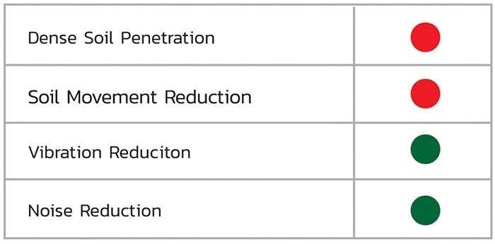 Pre Bored and Final Drive is installation method that is used screw to drill the soil out before piling to reduce vibration and soil movement or in case of construction area has hard soil layer, and then, drive the pile into the pilot hole.