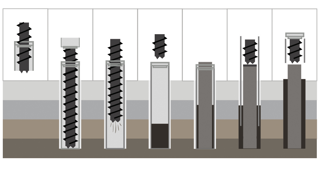 6. ถอด Casing พร้อมเป่าอัดลมไล่น้ำปูนเพื่อเติมช่องว่างระหว่างเสาเข็มกับชั้นดิน