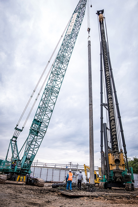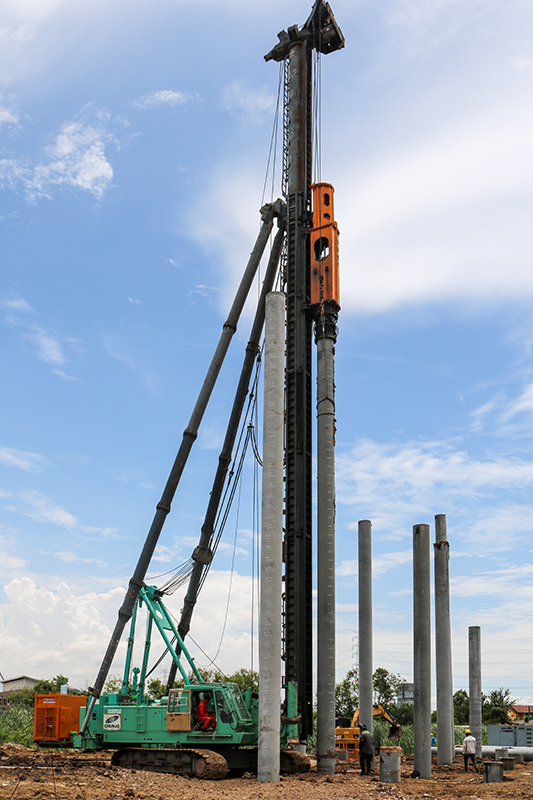 2. เจาะดินให้มีรูขนาดเท่ากับเสาเข็มพร้อมกับกด Casing ไปพร้อมกัน